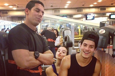Empolgada nos exercícios, ela arrasta o namorado com ela. Afinal, casal que malha unido permanece unido, né?